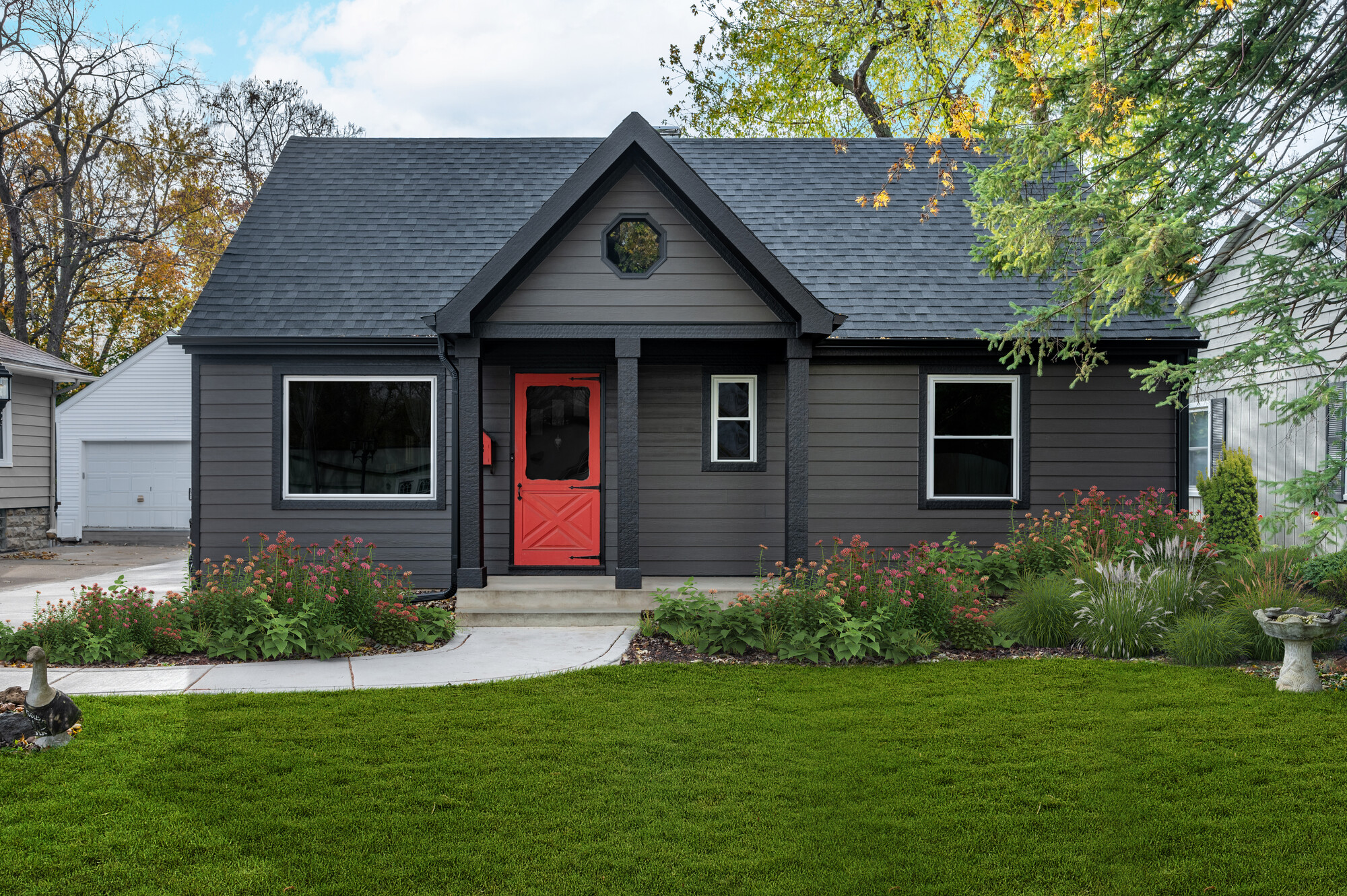 While some colors come and go, gray remains a top choice because of its enduring versatility. It pairs well with contemporary dark accents and classic white trims, allowing homeowners to refresh their exterior style without taking on a complete exterior remodel. If you choose gray for your home’s exterior, you can rest assured you’re picking a shade that will work well with any changing design trend well into the future.